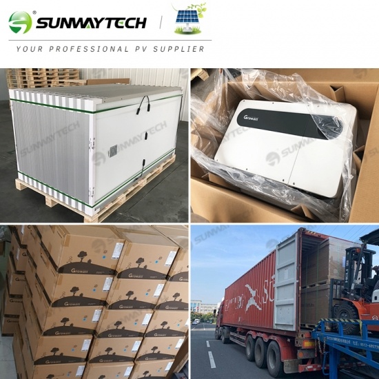 Sunway Solar 5kw أحادية الطور على نظام الطاقة الشمسية الشبكي مع لوحة شمسية ماركة صنواي ، عاكس الطاقة الشمسية من ماركة Growatt ، نظام تركيب السقف أو الأرض ، وغيرها من الملحقات.