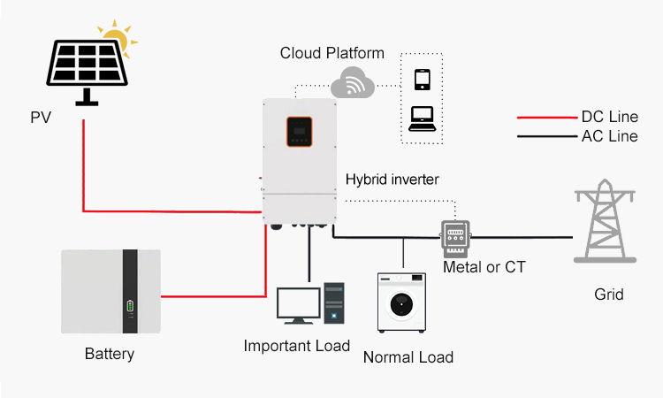 ديزملا أرقانظام الطاقة الشمسية الهجين نظام الطاقة الشمسية 6KW مع محول الطاقة الشمسية داخل وخارج الشبكة Growatt وبطارية ليثيوم أيون تنمو للاستخدام المنزلي