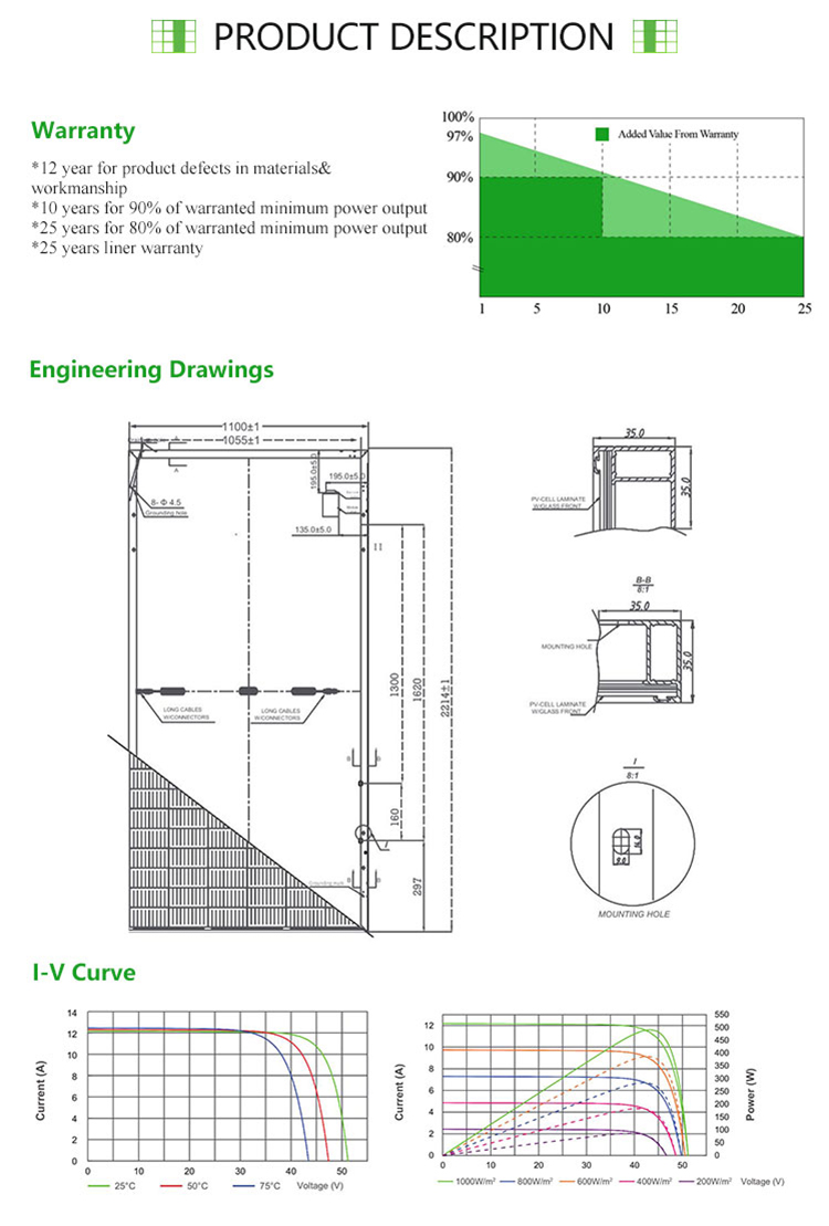 شركة الاتصالات السعودية | Irradiance 1000W / ㎡ ، درجة حرارة الخلية 25 ℃، الطيف صباحا 1.5 | ||||